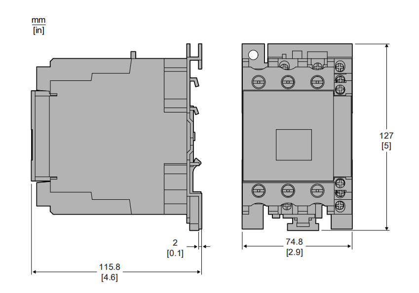 | Three-Phase | Inductive | Resistive | N.O. | N.C. | N.O. | N.C. | ||||||