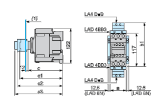 | c₁ | With LAD N (1 contact): - With LAD N/C (2/4 contacts): 150 |