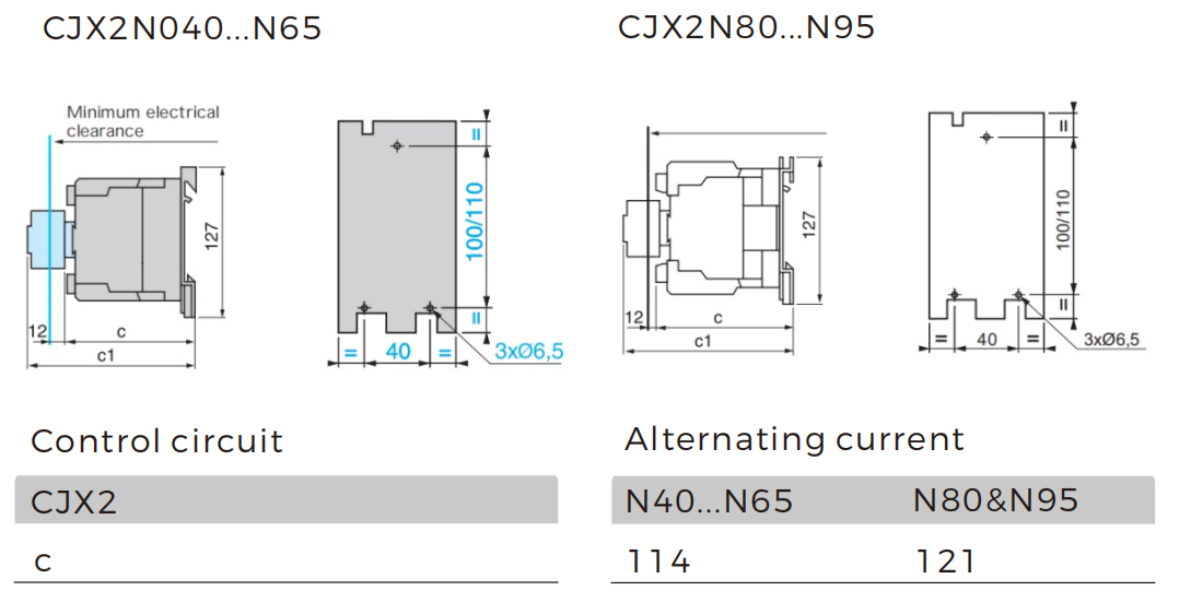 | Item | Description | CJX2 N06-N18 | CJX2 N25-N38 | CJX2 N40 | CJX2 N50-N95 |