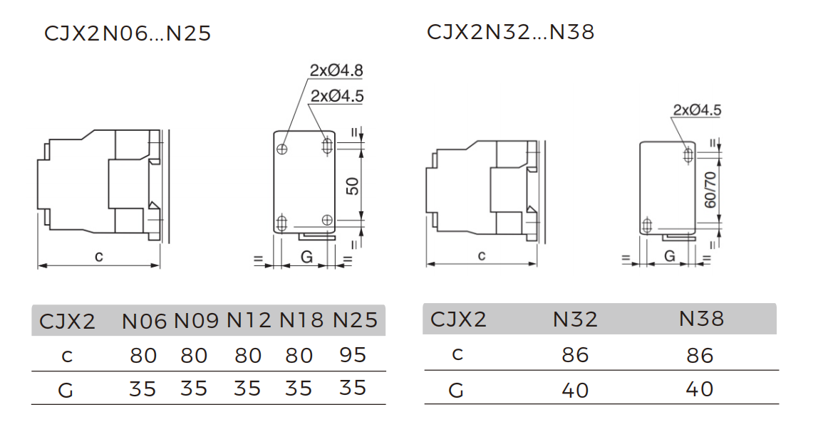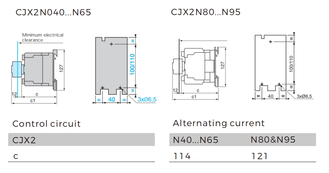 | Item | Description | CJX2 N06-N18 | CJX2 N25-N38 | CJX2 N40 | CJX2 N50-N95 |