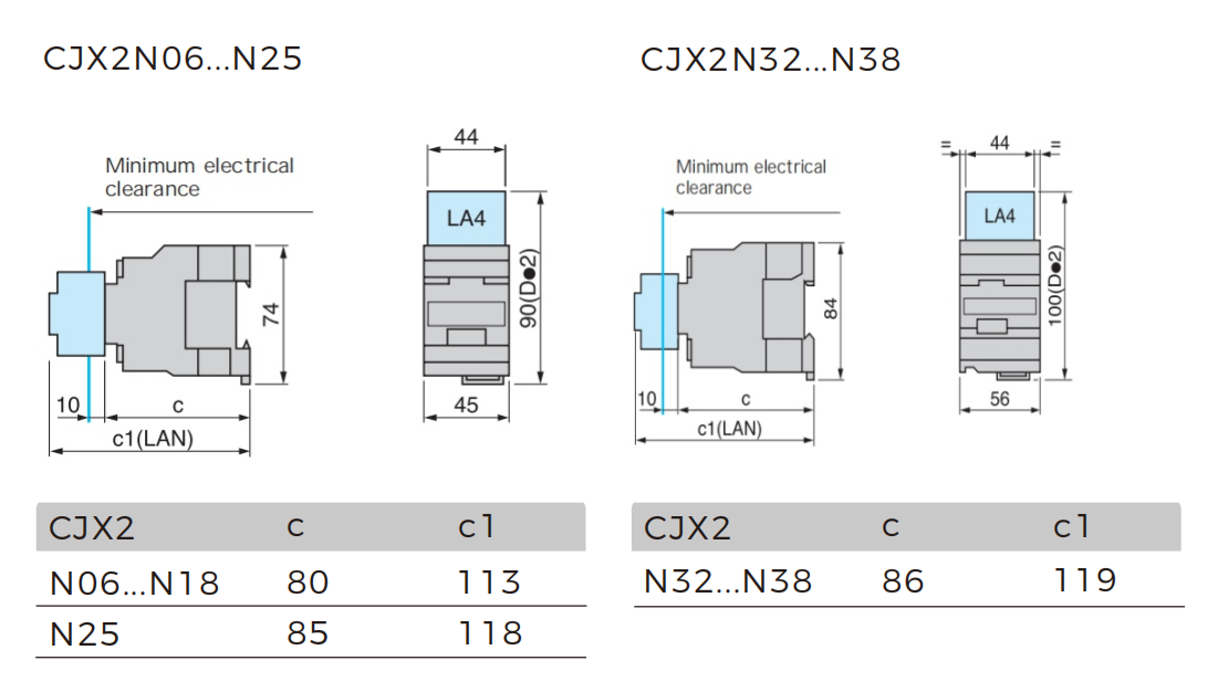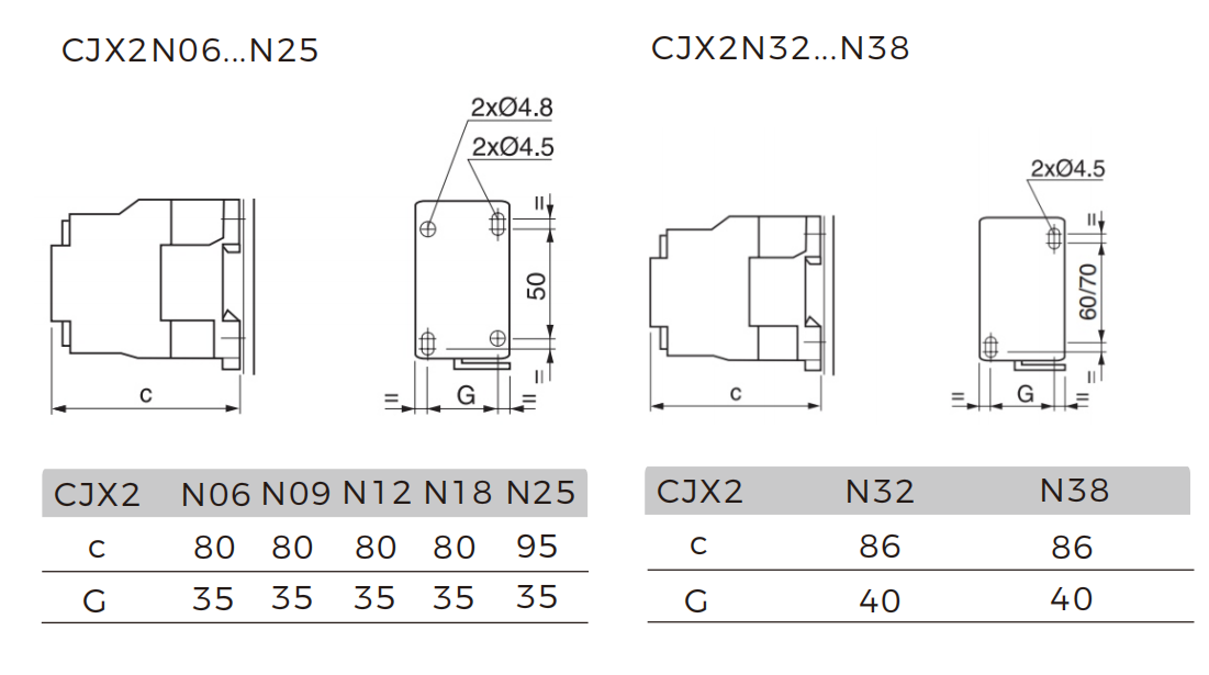 | Item | Description | CJX2 N06-N18 | CJX2 N25-N38 | CJX2 N40 | CJX2 N50-N95 |